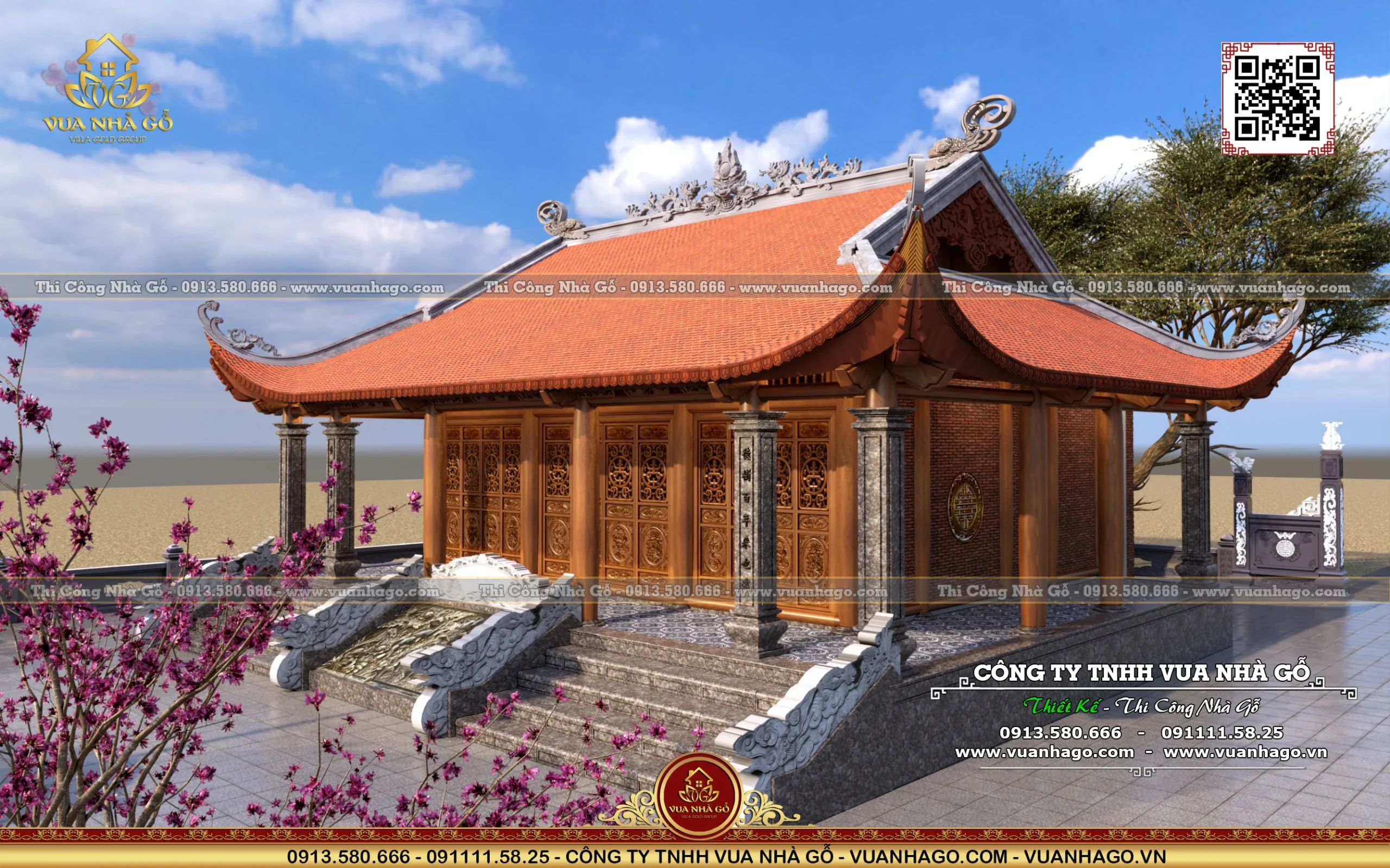 nhà gỗ 3 gian có hậu cung, nhà gỗ 3 gian mái đao, miếu làng gỗ lim, đình làng gỗ, thi công miếu làng đẹp, đình làng đẹp.